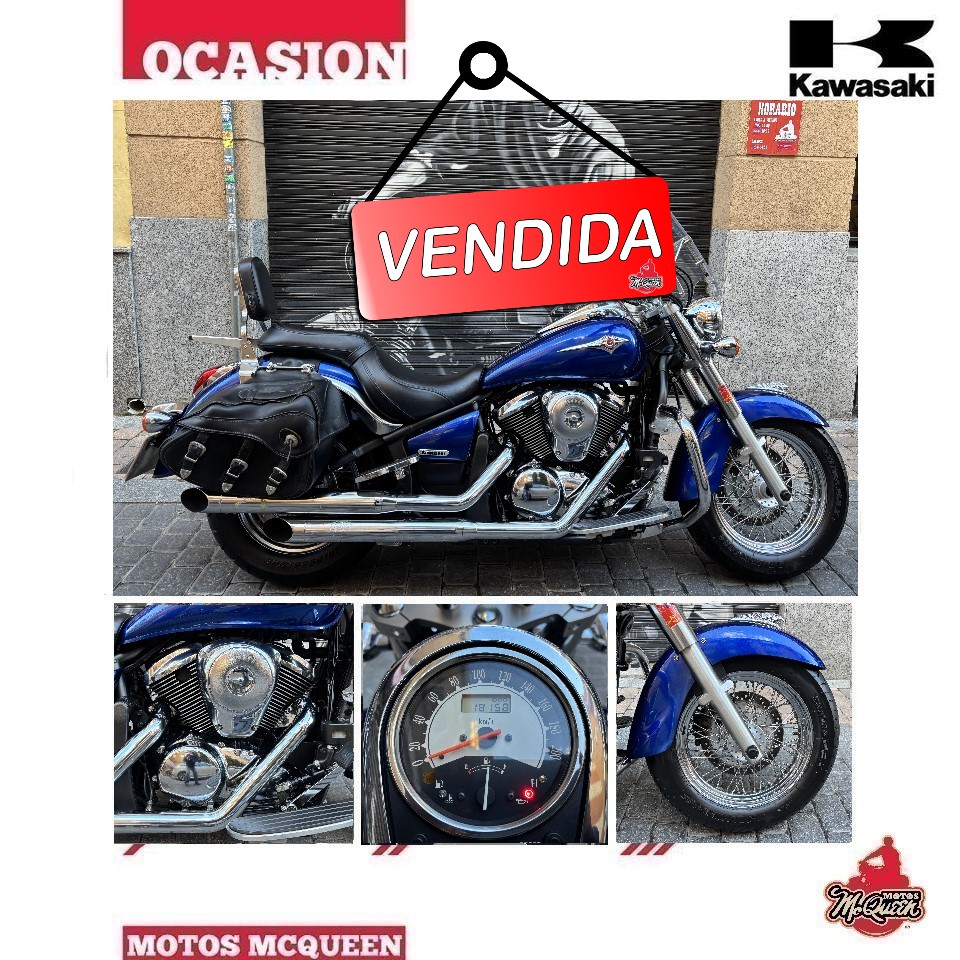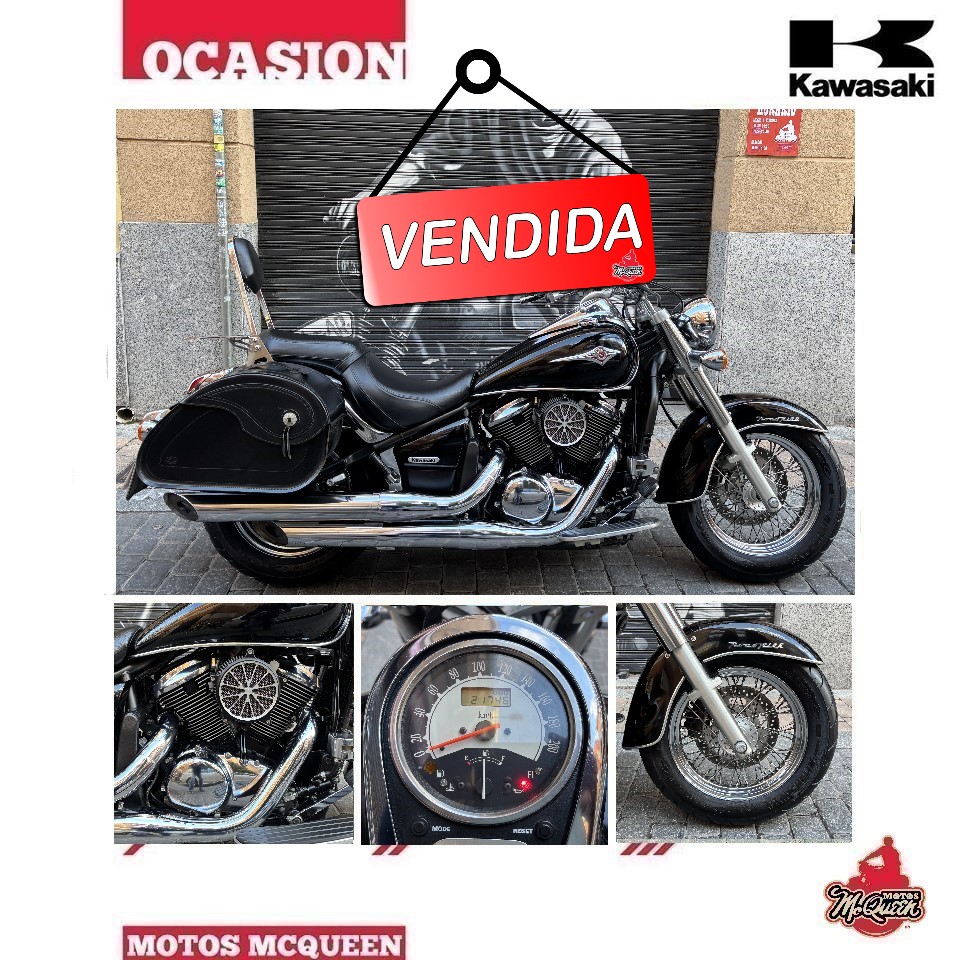 ¡¡¡ VENDIDA !!! KAWASAKI VN 900 CLASSIC del 2009 con sólo 18.158 km, en un estado absolutamente impecable. Cuenta con los siguientes extras: Pantalla, defensas, plataformas del pasajero, respaldo con parrilla, alforjas y escapes Silver Tail homologados, válidos para la ITV. Se entrega con revisión recién hecha y 1 año de garantía. Etiqueta ambiental C Se puede financiar sólo con la nómina, (sujeto a la aprobación del crédito, importe mínimo 1.000€)