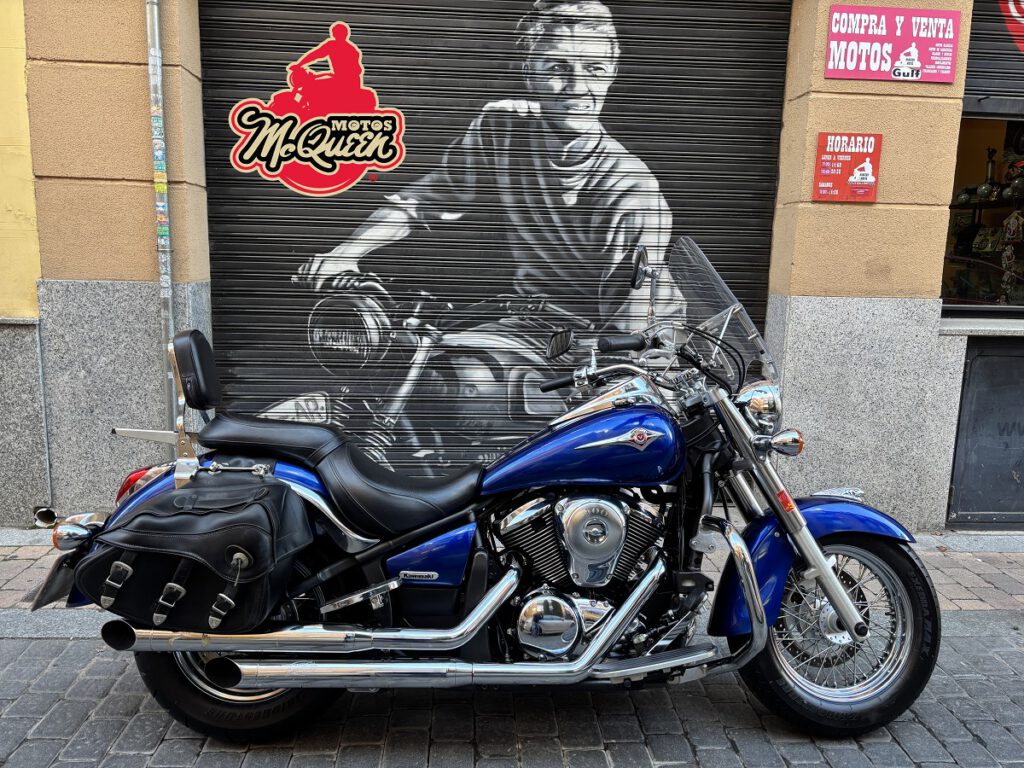 Motocicleta Kawasaki VN 2000 Classic del 2008 con 49.755 km, en muy buen estado. Cuenta con los siguientes extras: defensas, pantalla, respaldo y plataformas del pasajero, puños, rulo, alforjas, corbata del depósito y espejos. Se entrega con revisión hecha en servicio oficial. Etiqueta ambiental C. Garantía de 1 año. Se puede financiar sólo con la nómina, (sujeto a la aprobación del crédito, importe mínimo 1.000€). @Motos McQueen.
